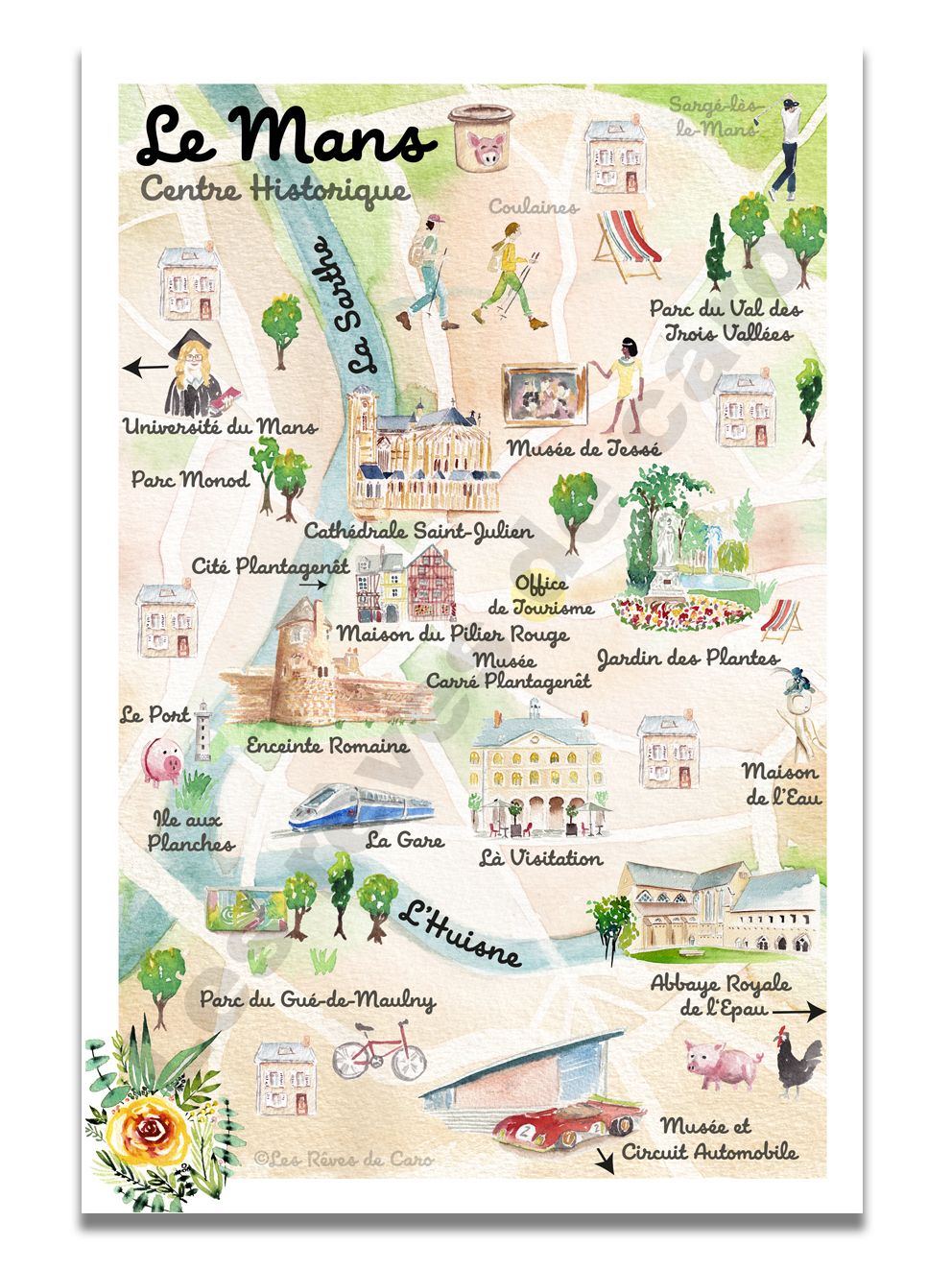 Affiche à l’Aquarelle « Le Mans Musées Centre Historique », très belle reproduction sur papier d’art.