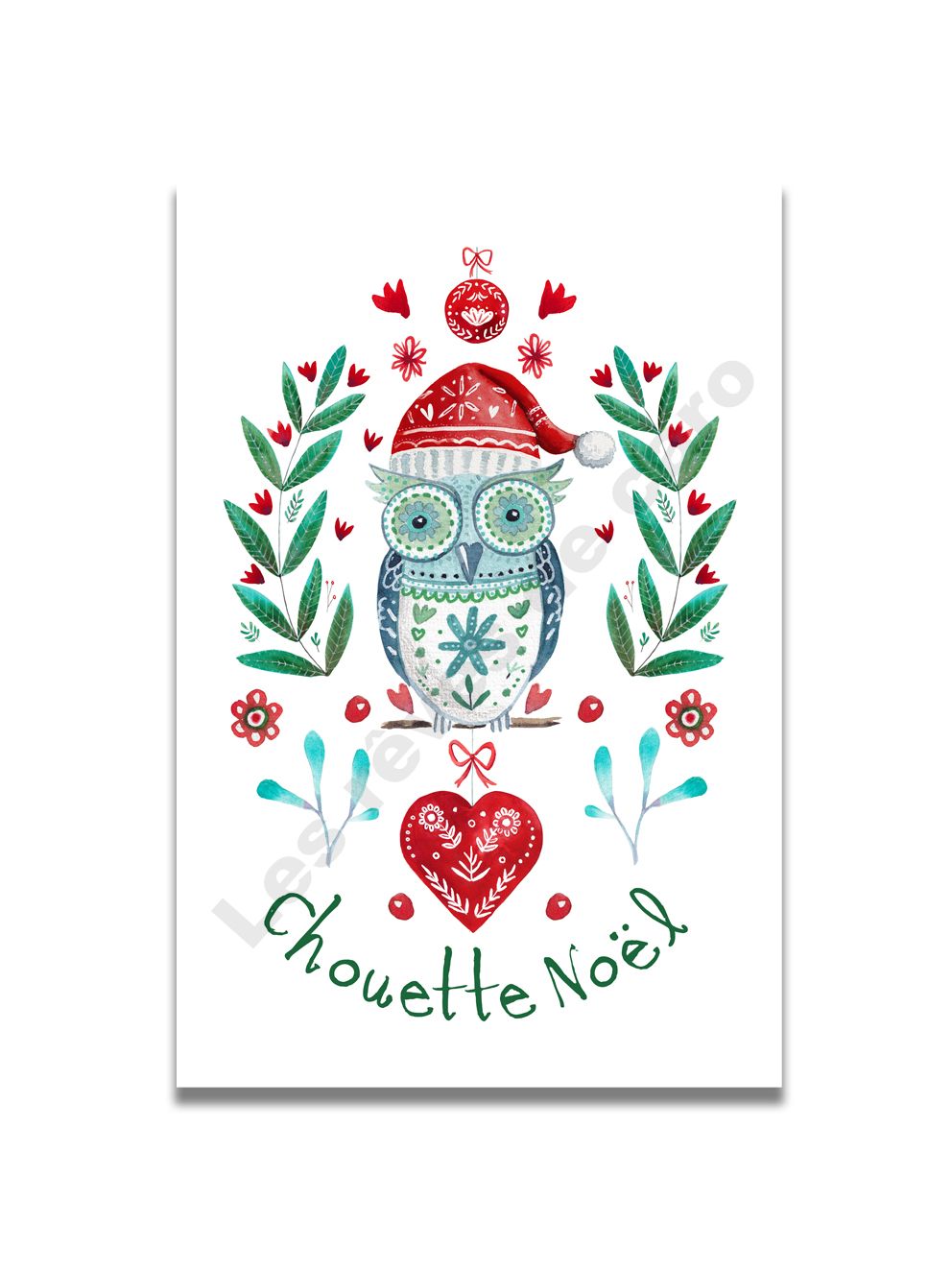 Jolie carte d’art à partir d’une aquarelle » Chouette Noël Folk »